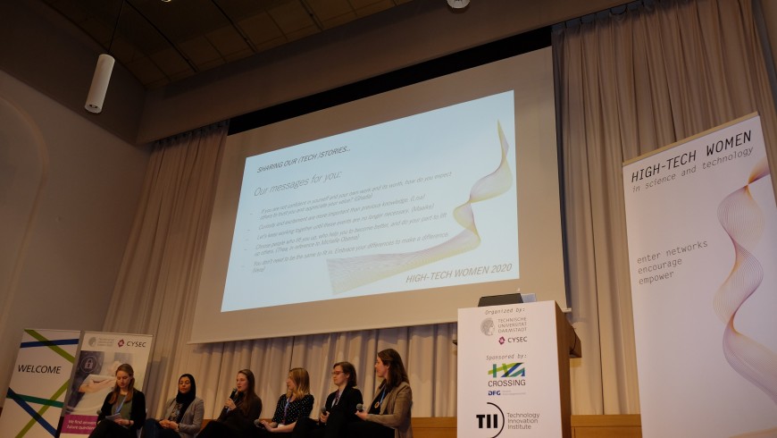 The High-Tech Women event was organized by the Profile Area Cybersecurity (CYSEC) of TU Darmstadt, and financially supported by the Technology Innovation Institute and the Collaborative Research Center CROSSING at TU Darmstadt.