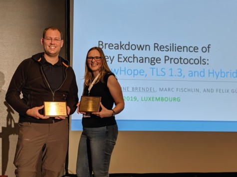 Für ihr Paper über das Breakdown Resilience Modell gewannen die CYSEC-Forscherinnen und -Forscher Jacqueline Brendel, Marc Fischlin und Felix Günther den Best Paper Award auf dem ESORICS Symposium 2019 in Luxemburg.